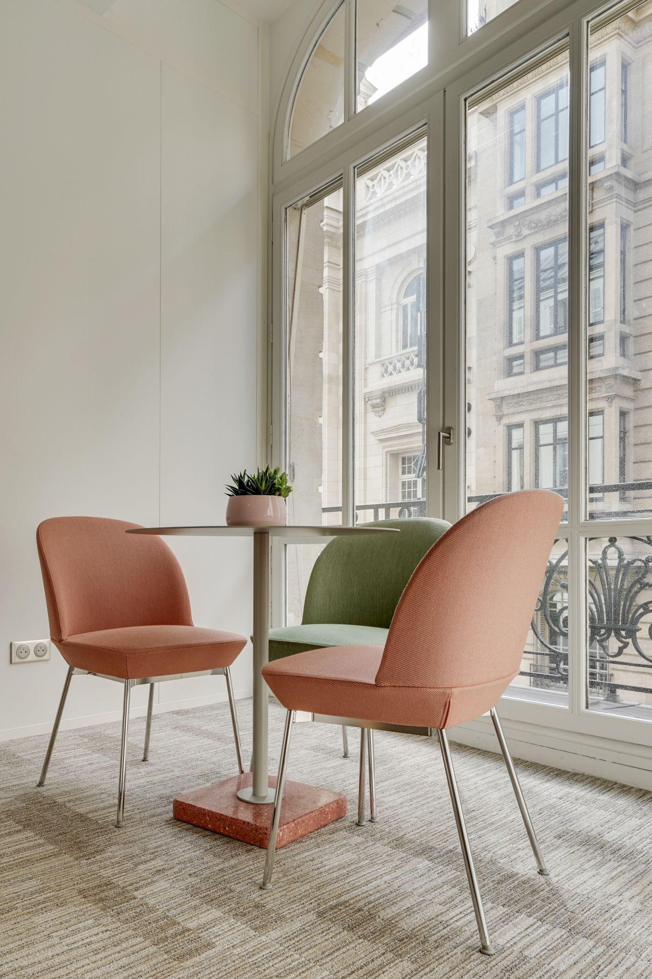La table Terrazzo du designer suédois Daniel Enoksso, accordée aux fauteuils Oslo de chez Muuto