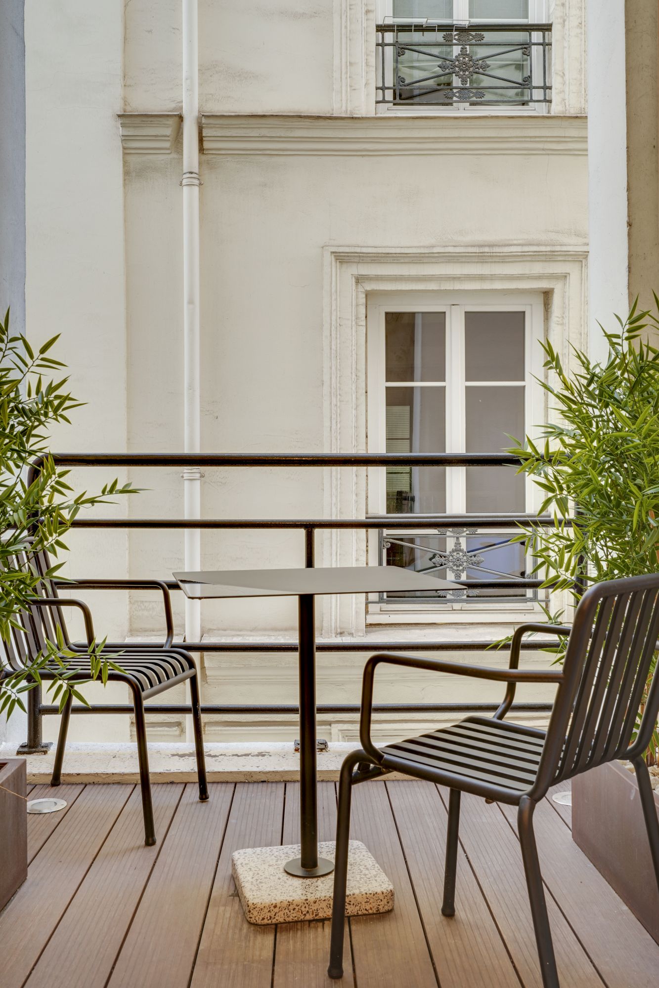 La petite terrasse et ses fauteuils Palissade de chez Hay